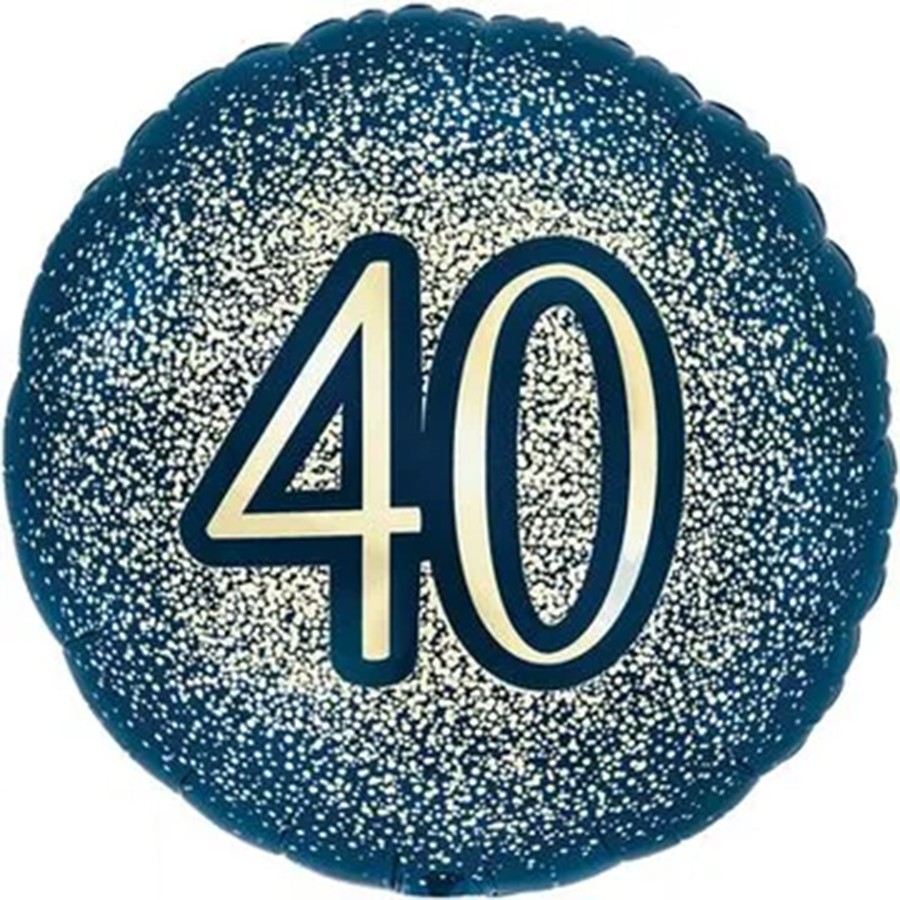Folieballon “40” Glitter Party Marine Blauw Goud
