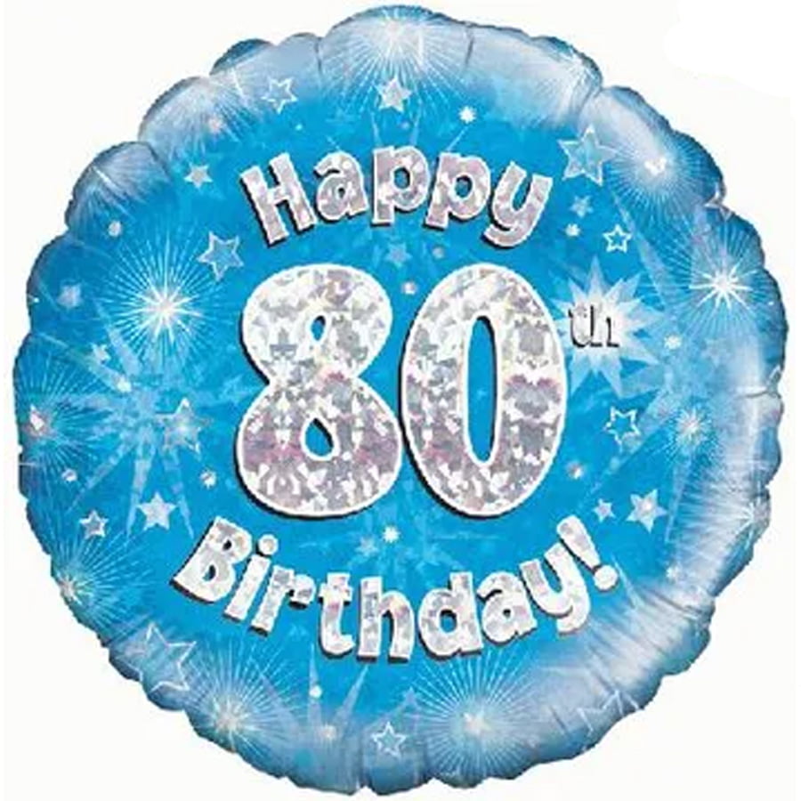 Wat een mijlpaal, 80 jaar! Verras de jarige op deze bijzondere verjaardag met een vrolijke, blauwe heliumballon met hartjes en sterretjes en ‘Happy 80th Birthday!’ erop. Ook leuk als versiering op een feestje.
