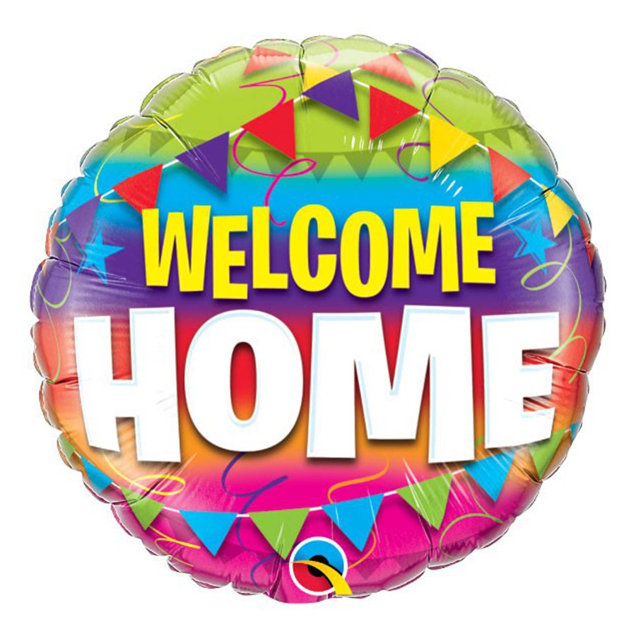 Het is feest, want jij bent terug van weggeweest! Maak van een thuiskomst een feestje met deze vrolijke ballon vol kleurrijke vlaggetjes en swirls en de tekst “Welcome Home”. Ook heel leuk als versiering op een welcome home surprise party na bijvoorbeeld een wereldreis. Of neem de ballon mee naar het vliegveld om de thuiskomer feestelijk te verrassen!