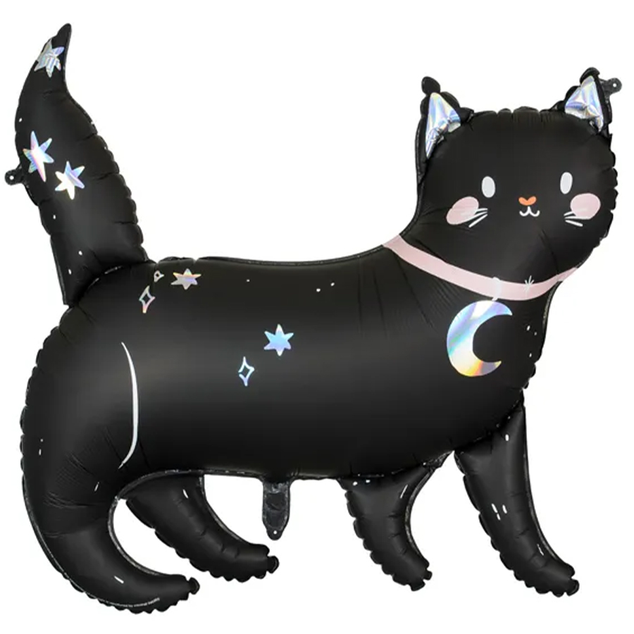 Breng een vleugje magie naar je feest met deze betoverende Zwarte Kat Folieballon! Met haar glanzende zwarte vacht, fonkelende sterren en een glimmende maan op haar rug, is deze ballon de ideale toevoeging aan elke Halloween decoratie. Met een speelse staart en schattige gezicht zal deze kat direct de aandacht trekken en een glimlach op ieders gezicht toveren.